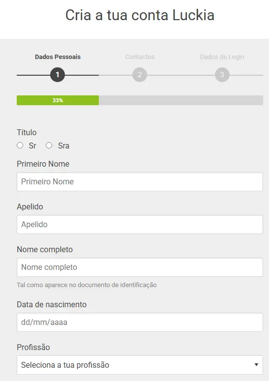 Dados Necessários para o Registo no Casino Luckia